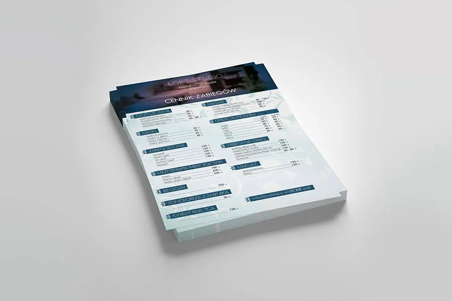 katalogi, broszury, foldery, plakaty, bilbordy, bannery wielkoformatowe, kalendarze, okładki